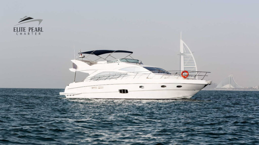 Create unforgettable memories on the waters of Dubai with Elite Pearl Charter’s Elite Majesty 56 ft. This luxurious yacht offers a perfect blend of spacious comfort and sleek design, ideal for groups of up to 26 guests. Relax in style on the expansive decks, soak in the sun, and breathtaking views. The Majesty 56 ft features three beautifully appointed cabins for overnight getaways, complemented with three bathrooms. Enjoy luxurious amenities from comfortable furniture to the sound system for an unforgettable experience. From celebrating special occasions to an action-packed day in the water to relaxing in style, the Elite Majesty 56 ft offers a complete Yacht Charter experience in Dubai.